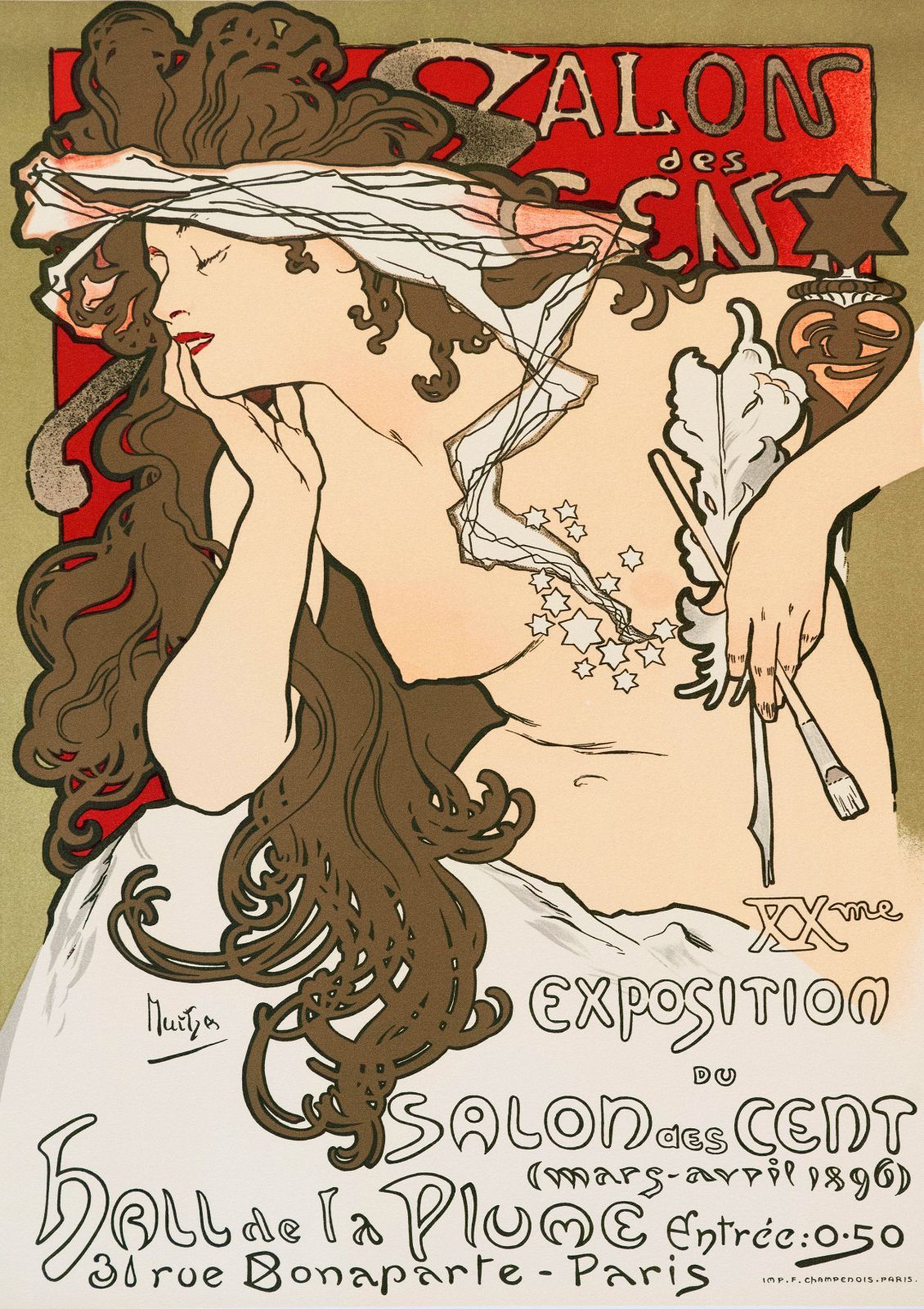 - 美術品・アンティーク・コレクション > 絵画 > アルフォンス・ミュシャ、サロン・デ・サンの第20回展のポスター アルフォンス・ミュシャ 「サロン・デ・サン第20回展」 A3(297