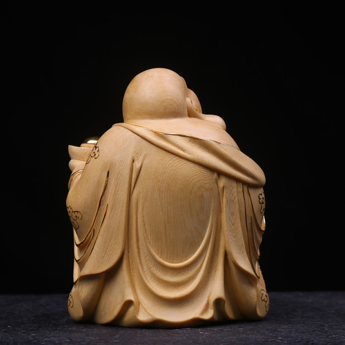 【修縁堂】極上彫 木彫仏像 七福神 布袋様 彫刻 一刀彫 天然木檜材 財運 弥勒仏 極上品 木彫仏像 切金 仏師彫り 細工精彫 七福神 布袋様